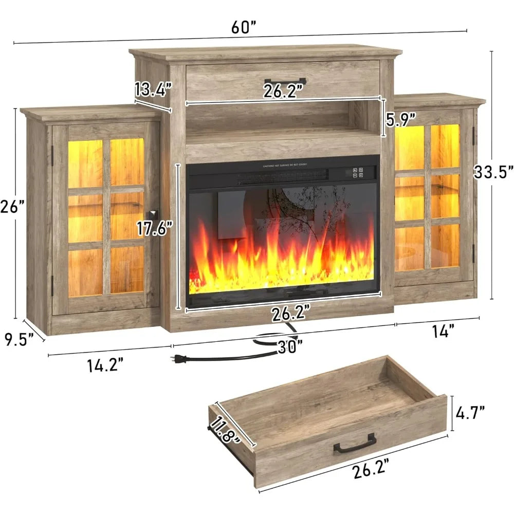 Electric Fireplace TV Stand With Mantel And LED Lights