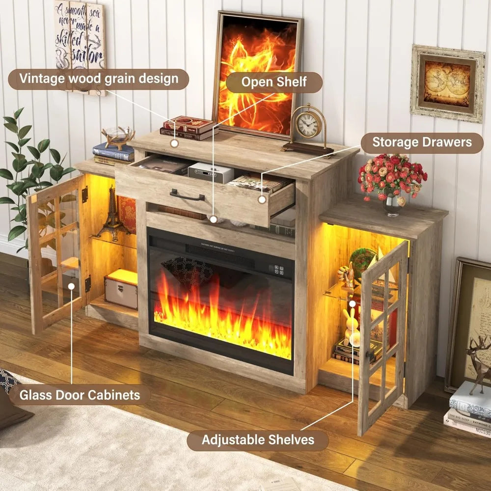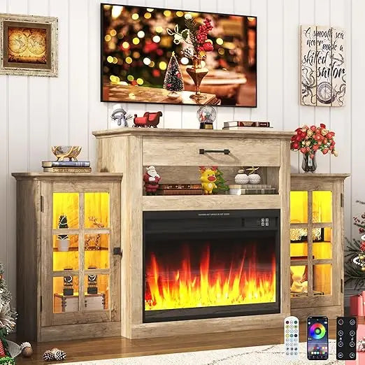 Transform your living room with an electric fireplace TV stand with mantel and LED lights for cozy warmth, smart organization, and modern, cinematic style.