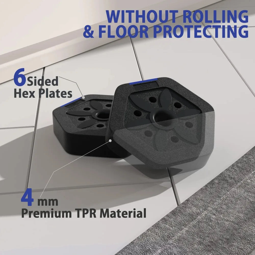- Durable and Safe Design: Constructed with a sturdy cement mixture core and encased in polyethylene and EVA resin, the hexagonal weights prevent rolling for safe storage and use. The rubber-coated non-slip handles ensure a firm grip for maximum safety during workouts.