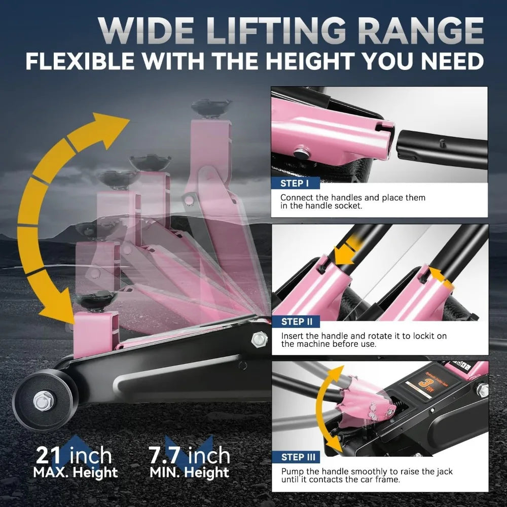 - 3-ton lifting capacity lets you tackle everyday car maintenance and light-duty truck tasks with measurable ease, from brake pad swaps to tire rotations.